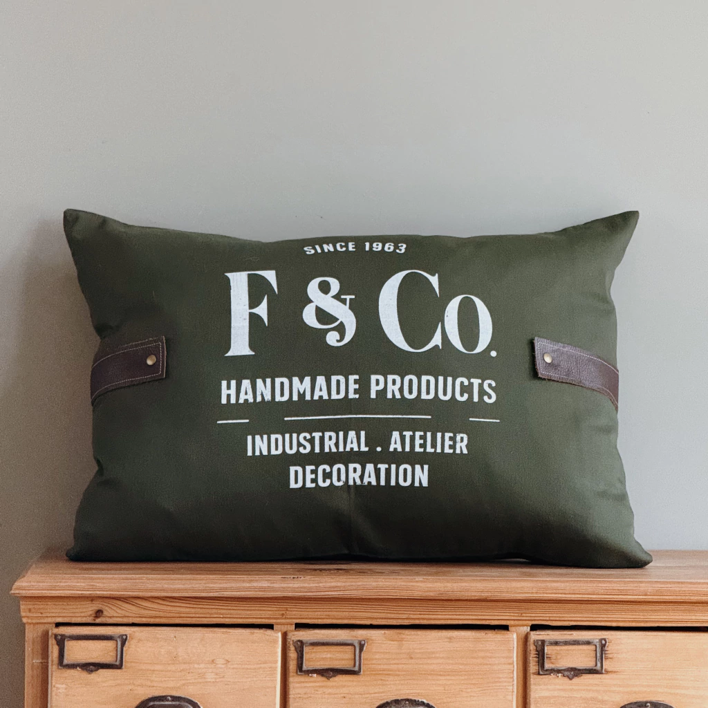 Un clásico de estilo industrial y espíritu de taller. Realizado en canvas estampado a mano, con detalles en cuero y bronce viejo.