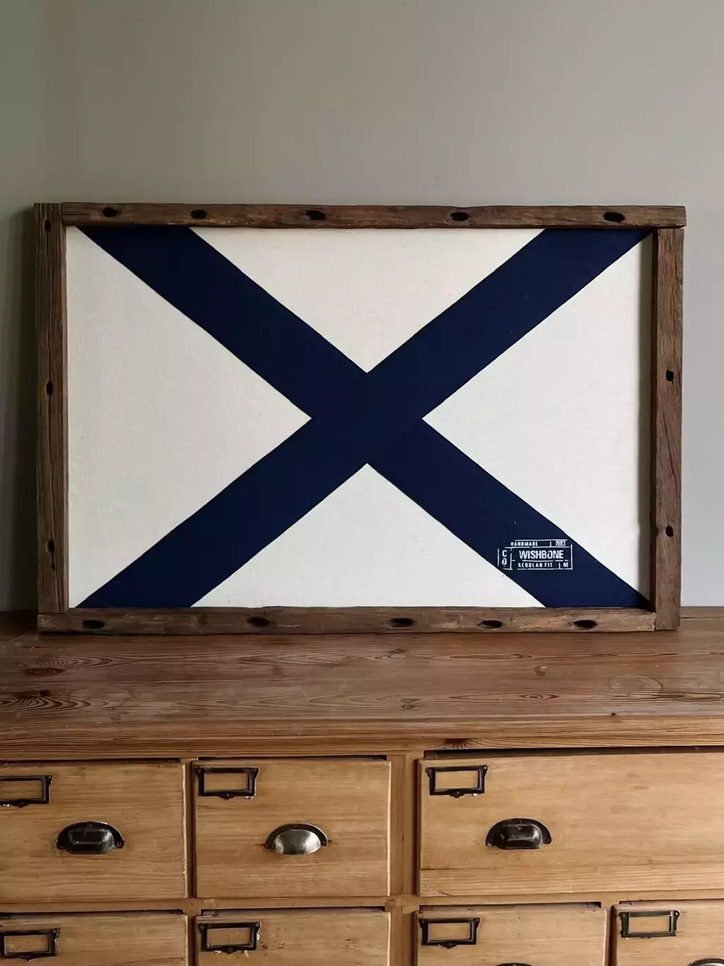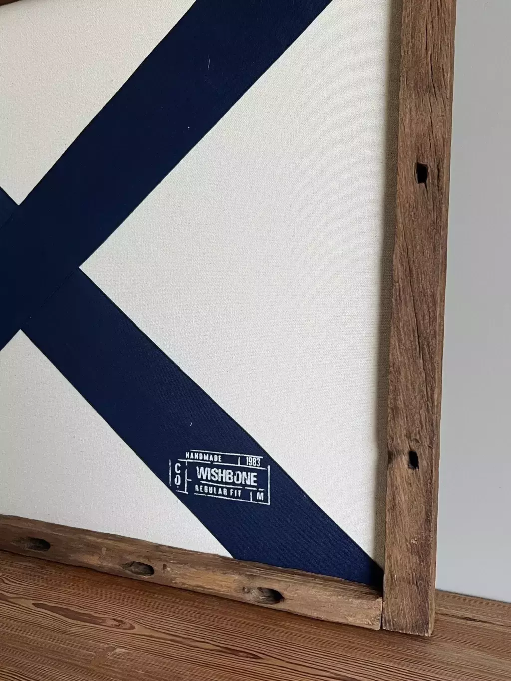 Nuestra Cruz Wishbone está cosida y estampada a mano, cuidando cada detalle. El marco está hecho con auténticas varillas de campo restauradas, conservando sus marcas del tiempo y su historia.