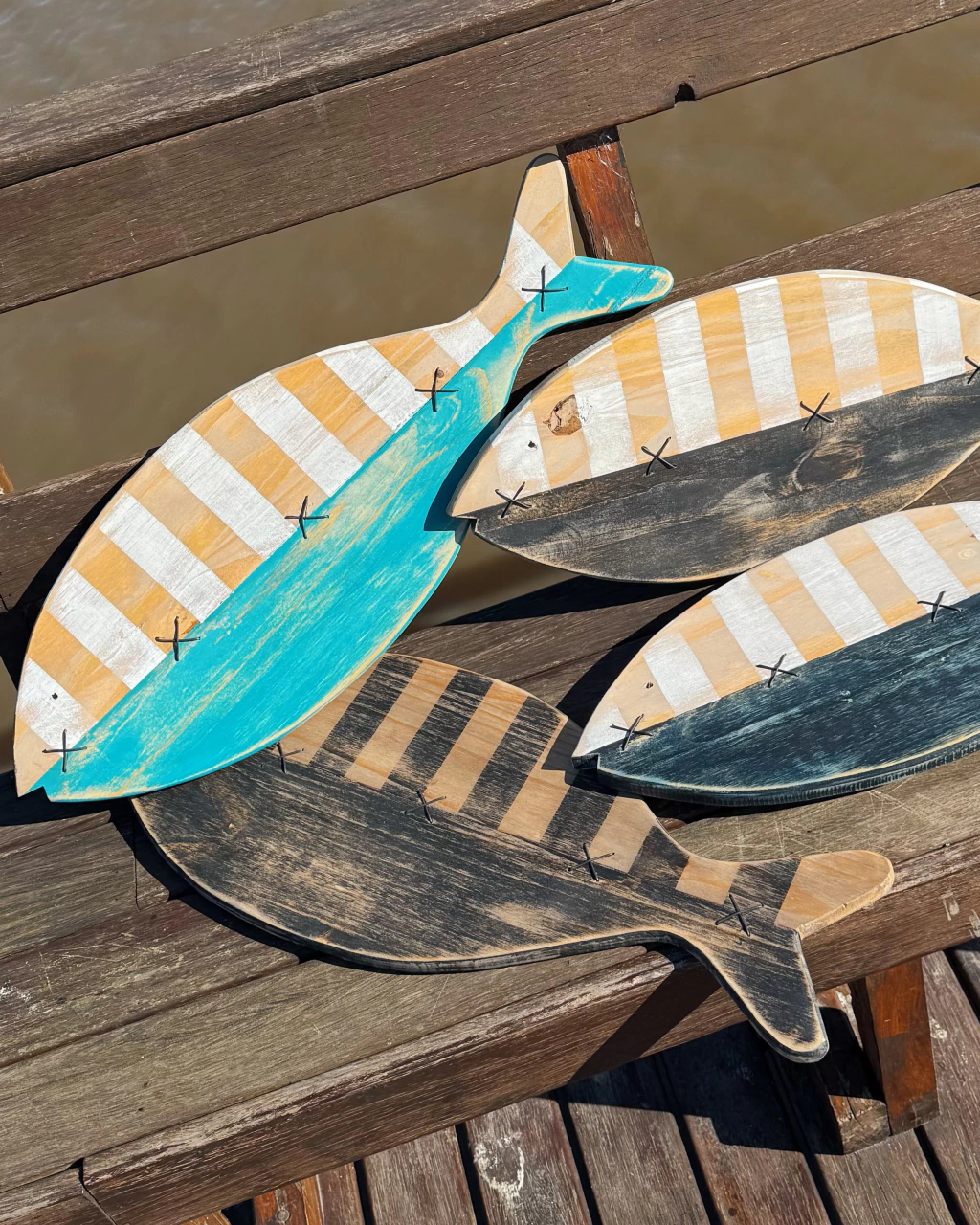 Hechos a mano, con detalles artesanales en alambre que le dan un toque original y náutico. Con sus colores desgastados y de estilo rústico, son ideales para decorar paredes, galerías, quinchos o cualquier rincón que necesite vida y textura.