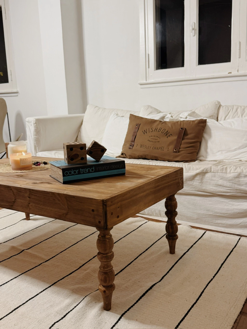 Con un diseño que combina lo clásico con lo atemporal, esta mesa ratona es una pieza que destaca por sus patas torneadas a mano, verdaderas protagonistas del conjunto. Su presencia sólida y elegante transforma cualquier living en un espacio con carácter, sin perder la calidez de lo hecho a mano.