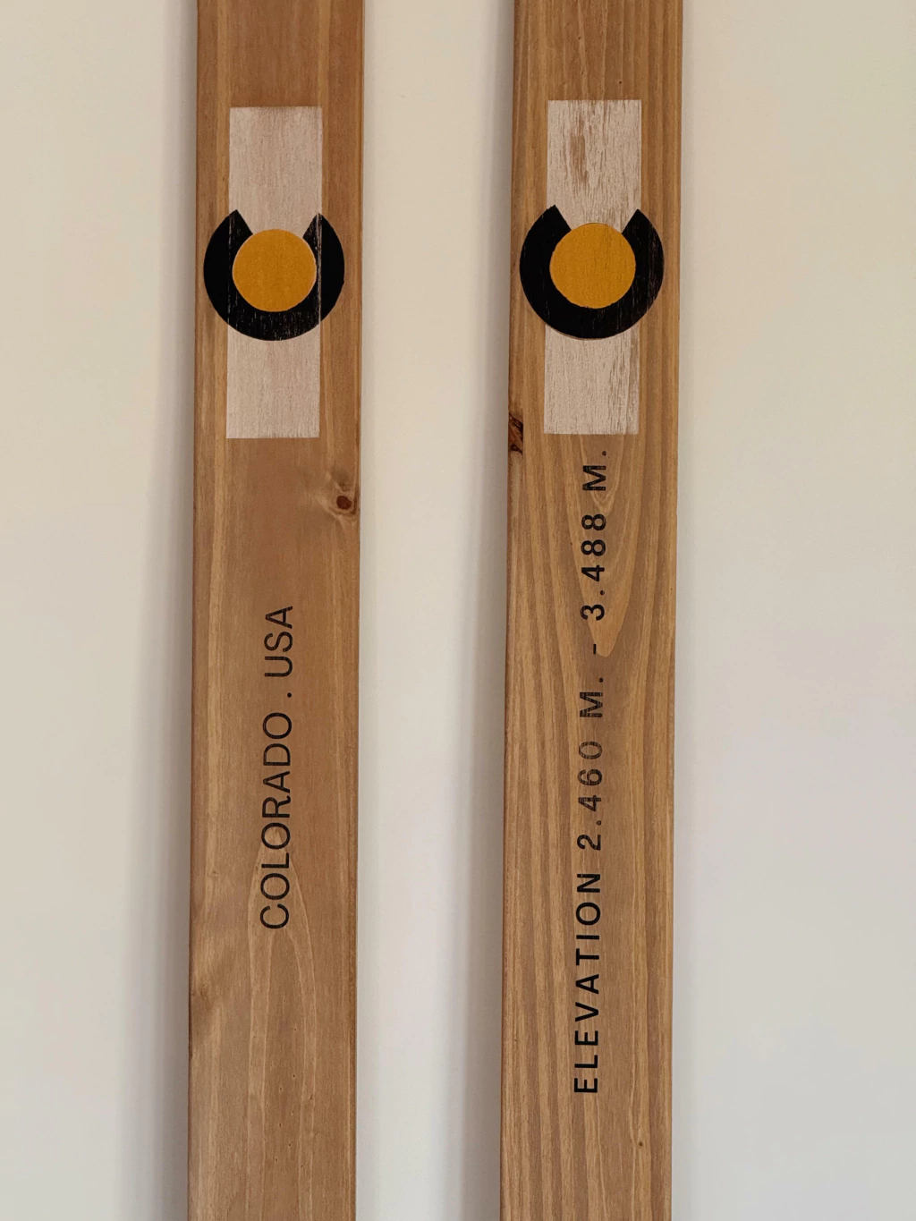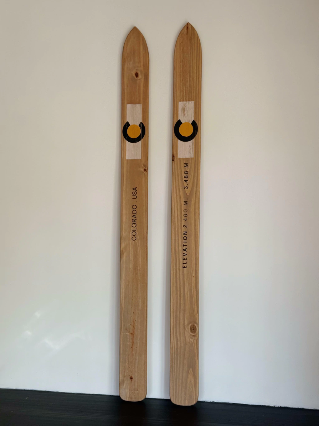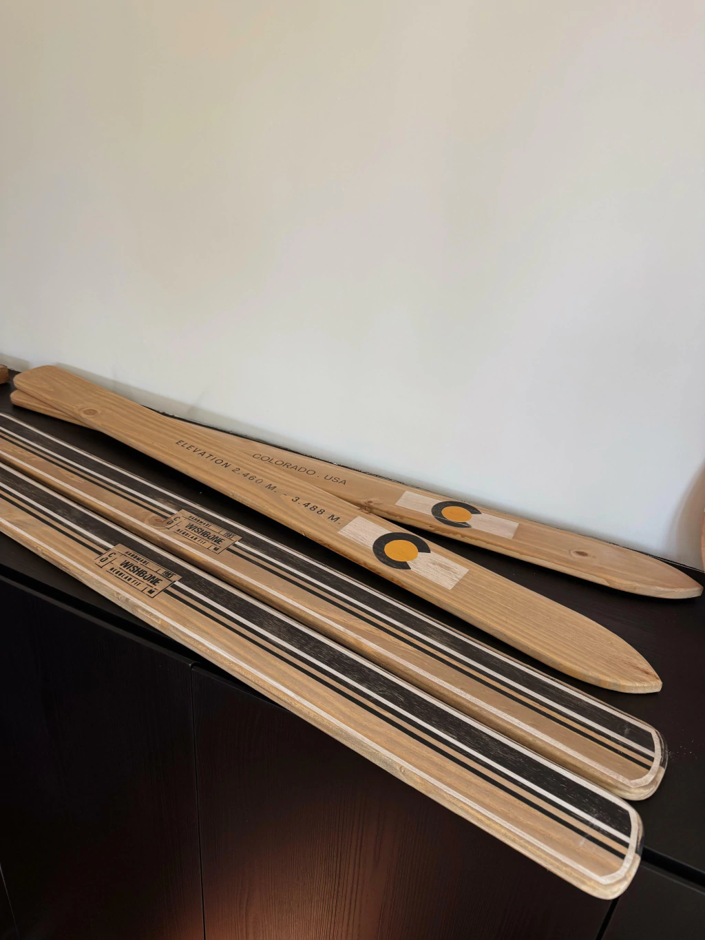 Cada par de skis está cuidadosamente hecho a mano, pintado y estampado artesanalmente, lo que los convierte en piezas únicas, llenas de estilo y personalidad. Su diseño combina lo rústico con lo moderno, ideales para sumar un detalle original a cualquier espacio.